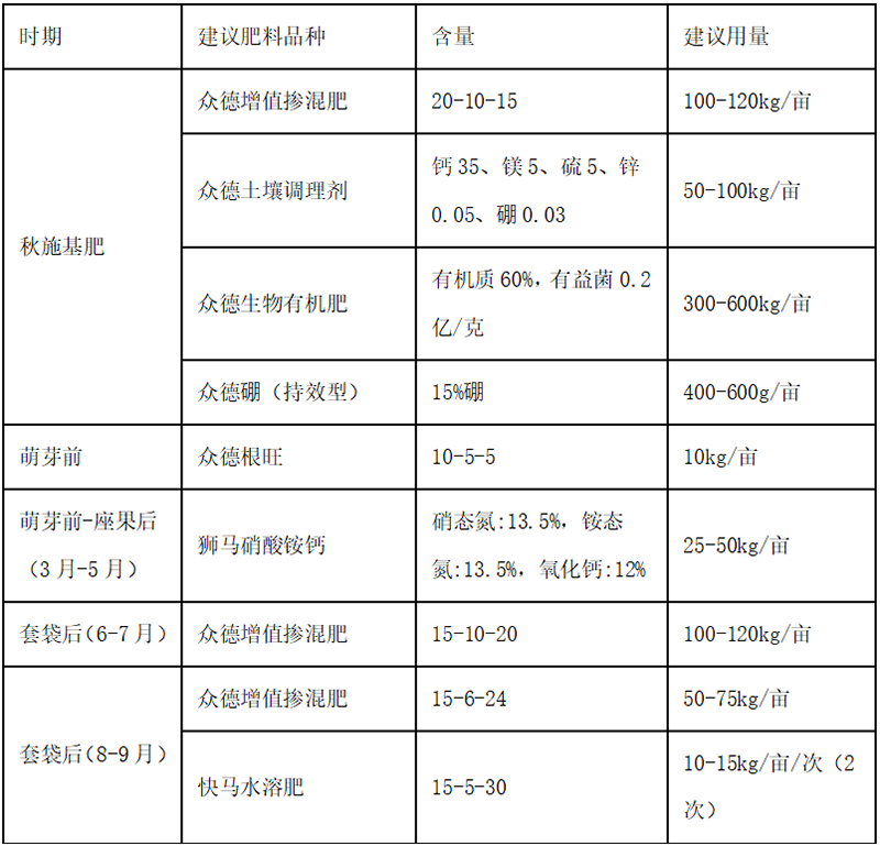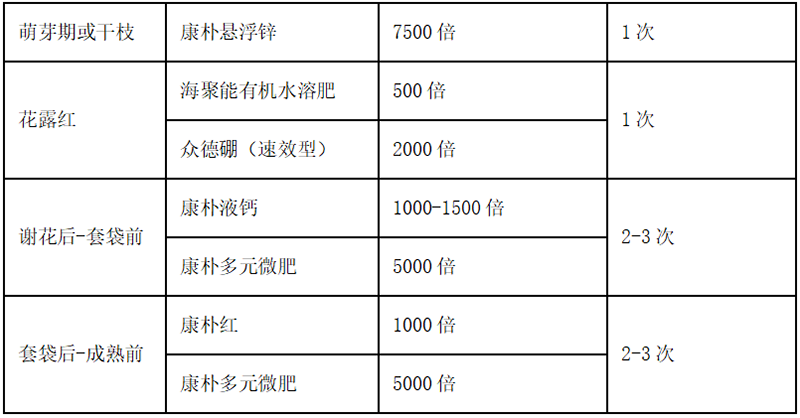E、中微元素因缺補缺、應根據土壤及樹體情況,通過土壤或葉面,進行適當補充;對于酸化土壤,要加大鈣鎂施用。