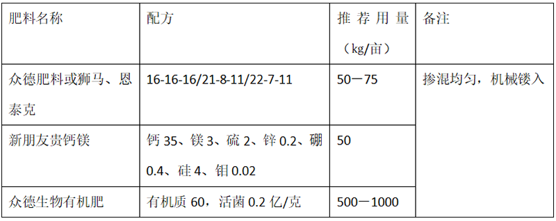 F、備注:眾德集團(tuán)科技服務(wù)中心專(zhuān)注作物高產(chǎn)高效栽培,由于集團(tuán)產(chǎn)品較多,國(guó)產(chǎn)進(jìn)口皆有,不同區(qū)域有不同的成熟產(chǎn)品套餐組合推薦,詳咨詢(xún)電話0535-6857828轉(zhuǎn)各作物經(jīng)理。