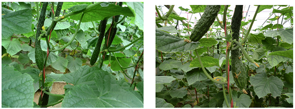 結果期:黃瓜生長前期吸收養分數量較少,開花坐果前需肥量占總需肥量的15%左右。隨著生育期的推進,吸收養分數量不斷增多,到結瓜期時達到吸收高峰,從結瓜至結瓜盛期,吸收養分數量占全部需肥量的85%左右,其中50%~60%是在收獲盛期。根據這一特點,坐瓜后要結合澆水適時適量的追肥補肥,滿足其生長需要,促進產量和質量。